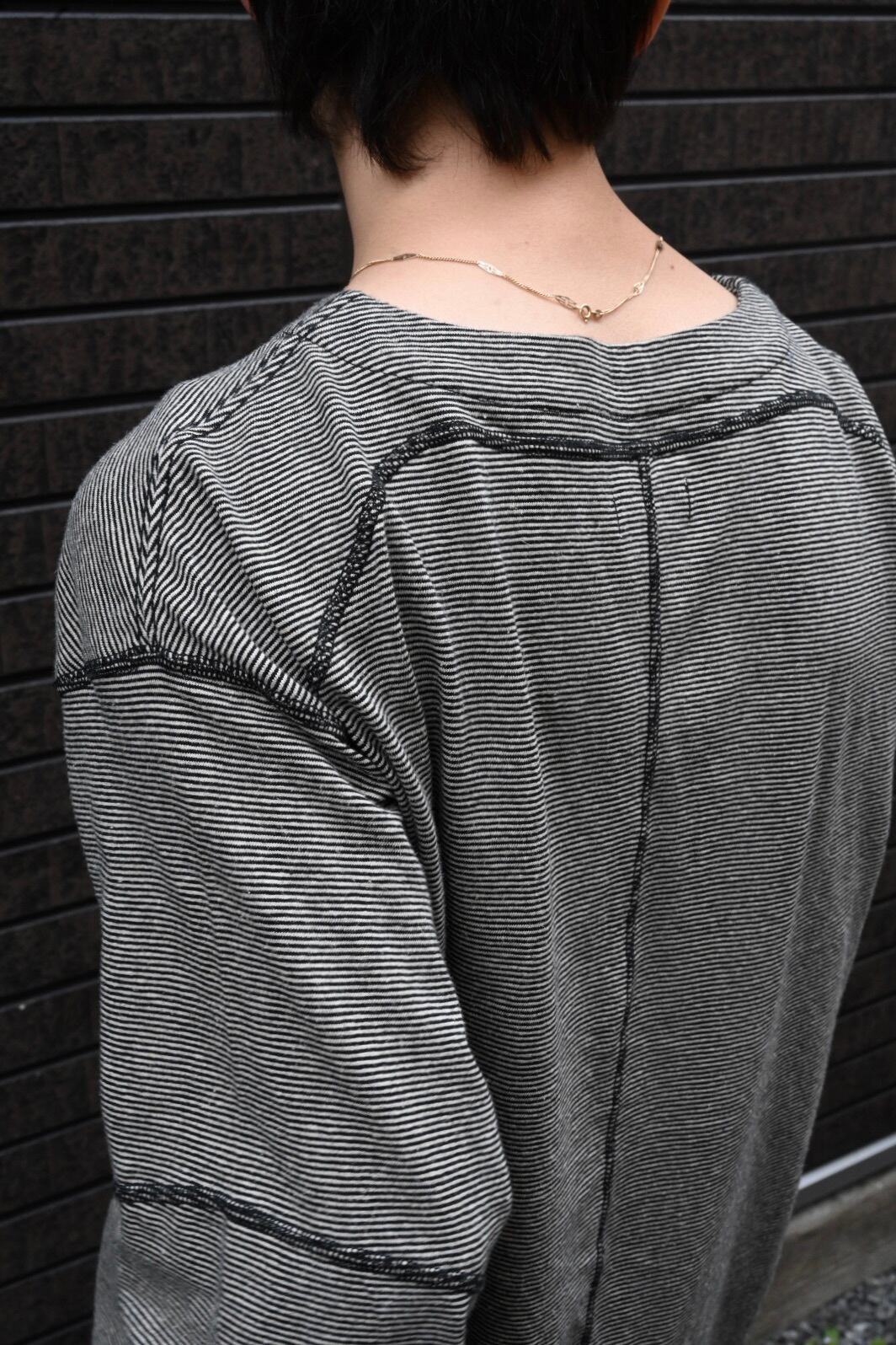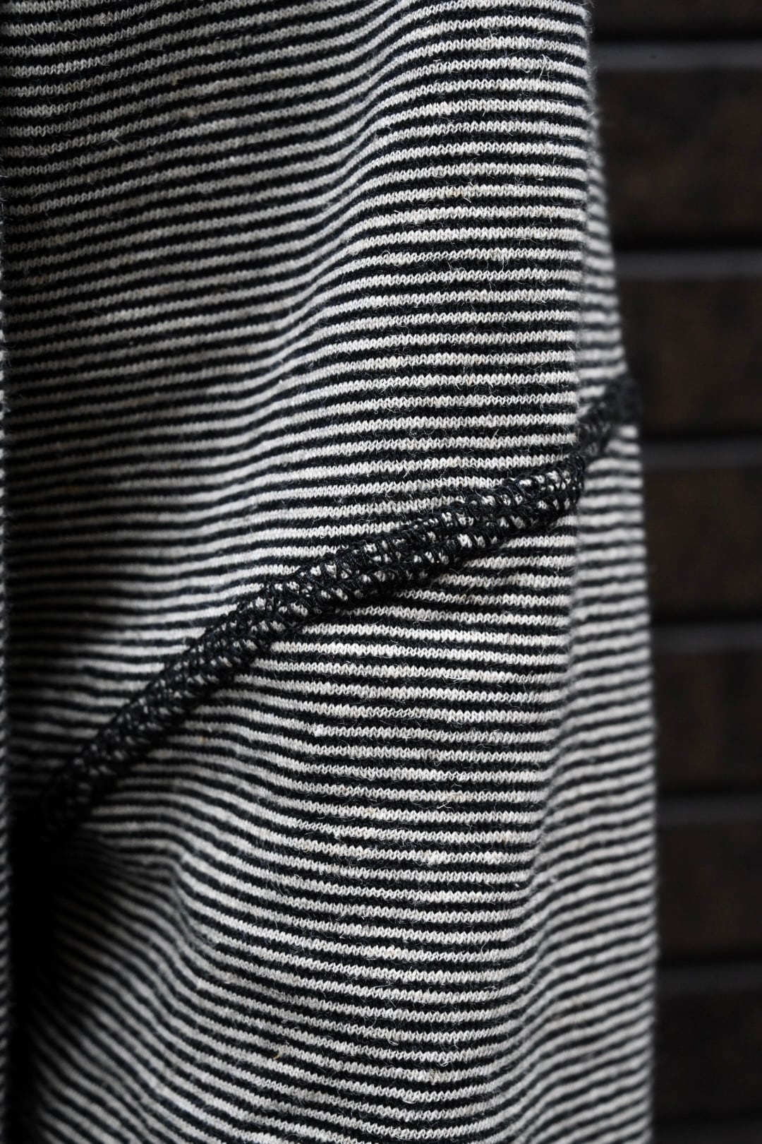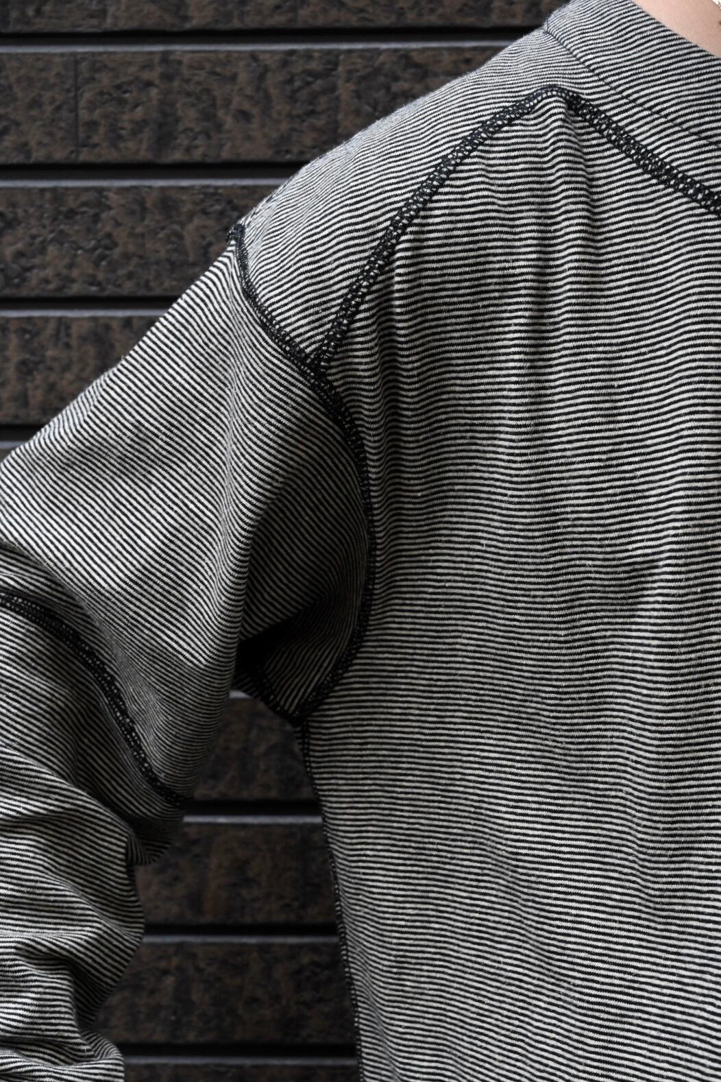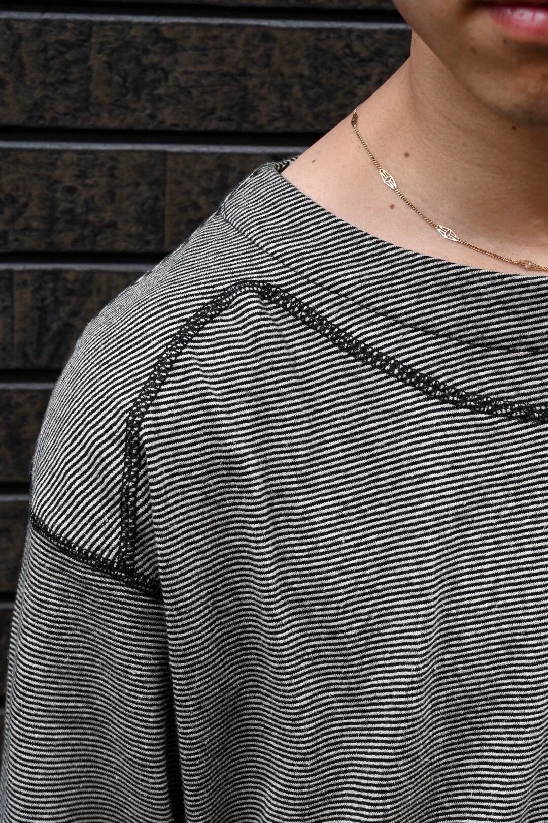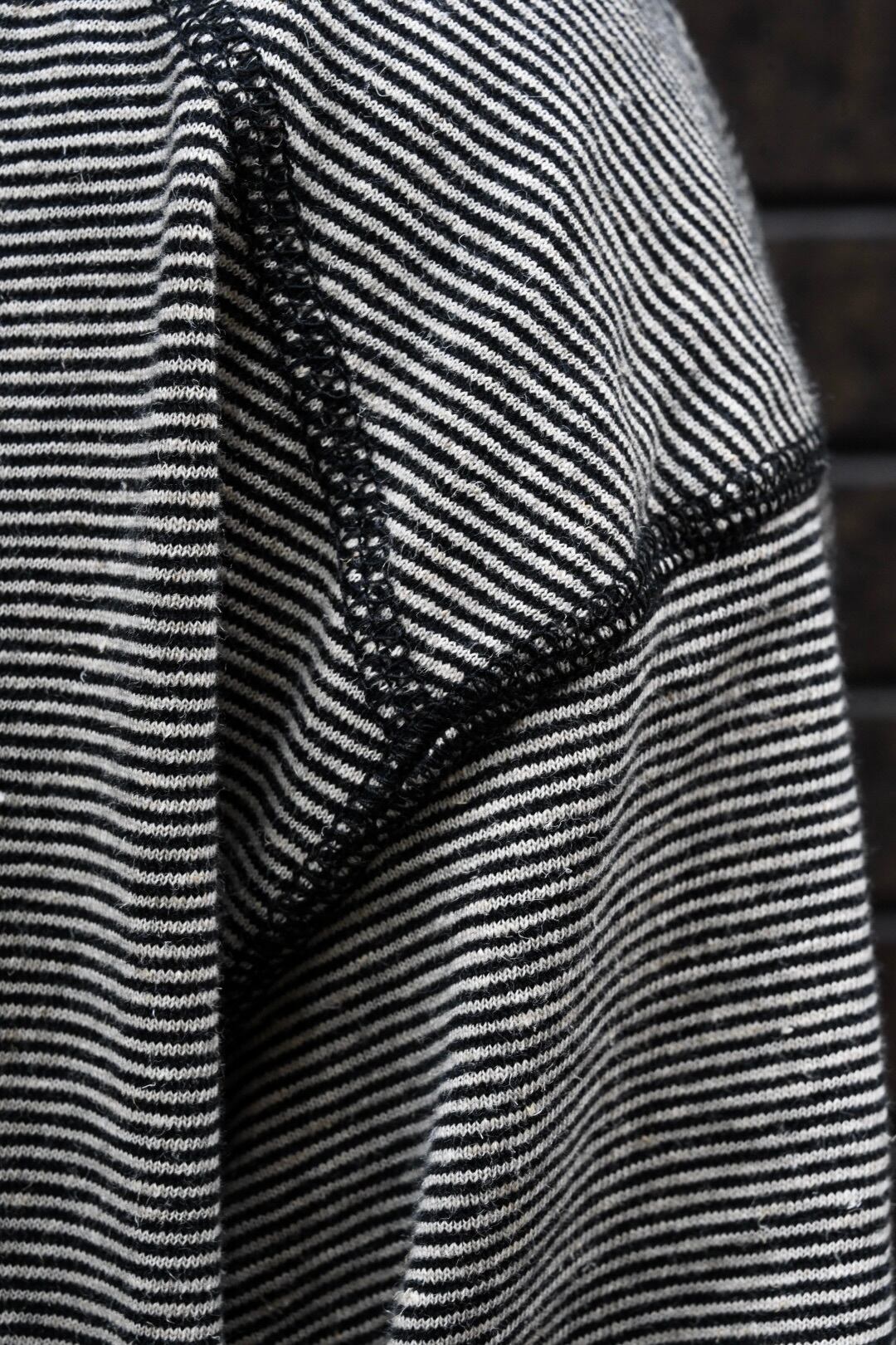素材特有の粗さと細いピッチのボーダーがいいアクセントになっており、絶妙な塩梅。